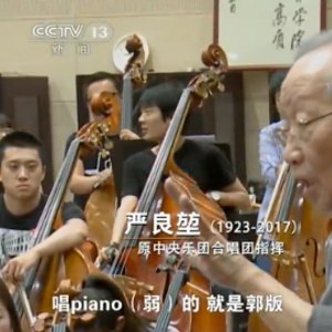 严良堃(1923-2017)是原中央乐团合唱团指挥,早在1956年,严良堃便在莫斯科排练演唱过《黄河大合唱》。