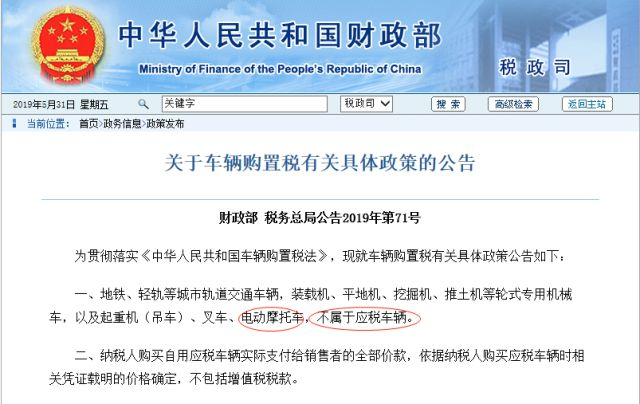 今年5月,财政部、税务总局发布《关于车辆购置税有关具体政策的公告》,其中明确规定,7月1日开始,电动摩托车将无需缴纳车辆购置税。
