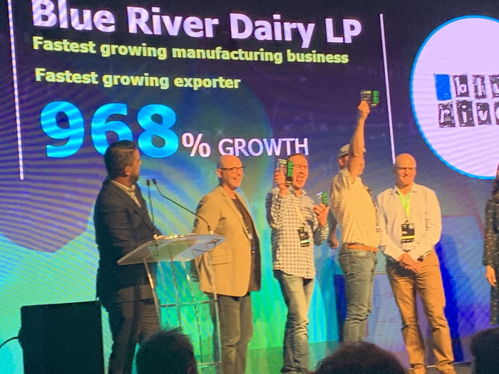 2019年11月,蓝河乳业以968%的整体增速,获得世界知名会计事务所德勤发布的“新西兰增速最快出口企业”、“新西兰增速最快制造企业”和“新西兰增速最快综合类企业第五名”奖项。