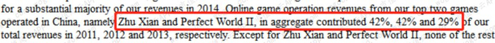 2011-2013年,《诛仙》和《完美世界II》合计获得收入占全部游戏业务的42%、42%和29%,其余单款游戏收入占比均未超过10%。