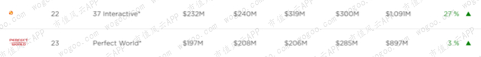 在Newzoo全球游戏公司收入排名中,完美世界仍以8.97亿美元排在23名,位于三七互娱之后。