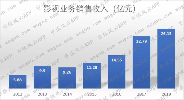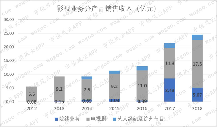 电视剧业务持续占主导地位,而且2018年公司影视业务整体增长也得益于电视剧业务,其销售收入较上年增长54.9%。