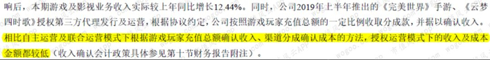 尽管未公布具体分成比例,公司也明确表示授权运营收入较低。