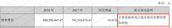 2018年销售费用增长较多,主要是由于新游戏上线导致宣传费用增加。