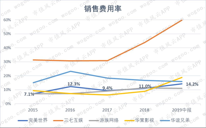 而且与两个公司对比发现,不论在游戏公司还是影视公司中,完美世界的销售费用率都不算高。