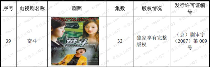 在公司披露的信息中,风云君看到许多熟悉的电视剧,《奋斗》、《老有所依》等是公司拥有独家完整版权。(许可证日期在公司成立前的电视剧版权是通过收购得来的)