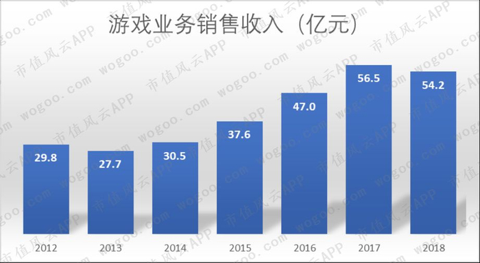 2012-2018年,公司游戏业务规模从29.8亿增至54.2亿,年均复合增长率为10.5%,低于影视业务增速。