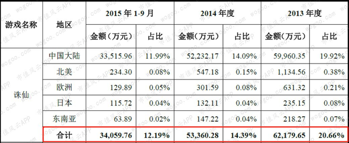 下面是部分年度数据,2013年、2014年、2015年1-9月《诛仙》端游为公司带来营业收入6.2亿、5.3亿和3.4亿。