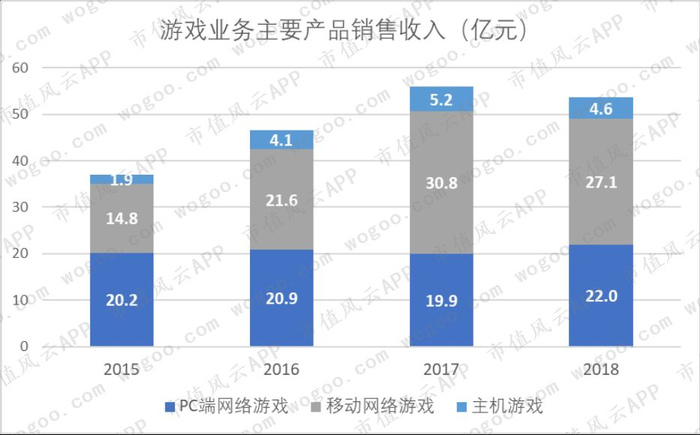 2018年,中国PC端游市场销售收入619.6亿,完美世界占比3.55%;中国移动游戏市场销售收入为1339.6亿,完美世界占比2.02%。
