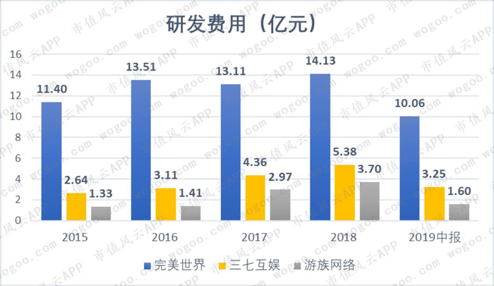 从绝对值来看,除网易和腾讯外,完美世界的研发投入碾压市面上其他游戏公司。