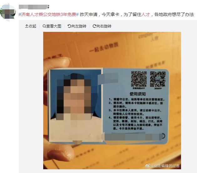 每经小编(微信号:nbdnews)注意到,今天(12月31日)微博上已经有不少网友开始晒起了“泉城人才交通卡”,有网友表示“昨天申请,今天拿卡”。