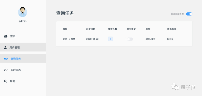 如果你不善于使用命令行模式,还可以使用图形界面观察抢票任务。