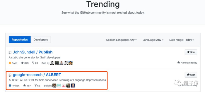 谷歌ALBERT模型V2+中文版来了:之前刷新NLP各大基准,现在GitHub热榜第二
