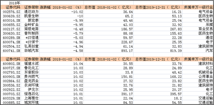 Wind数据显示,截至2018年最后一个交易日收盘,A股两市上市公司总数达3567家,有1200余只股票跌幅超40%。从板块看,申万行业分类28个行业市值全军覆没,其中,跌幅最小的为银行板块,下跌11.96%;而传媒、挖掘、建筑材料等12个板块跌幅均处于30%以上。