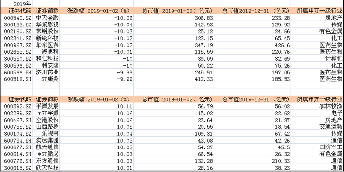 2019年1月2日,A股市场内33只个股录得涨停、18只个股跌停。跌停居首的是中天金融(000540.SZ),公司主要从事房地产开发;涨停居首的为平潭发展(000592.SZ),属于海西概念股。中天金融的跌停或是2019年房企艰难的缩影。事实上,2019年,数百家迷你房企的破产重组、悄无声息地裁员优化等一系列现象均在年内上演。