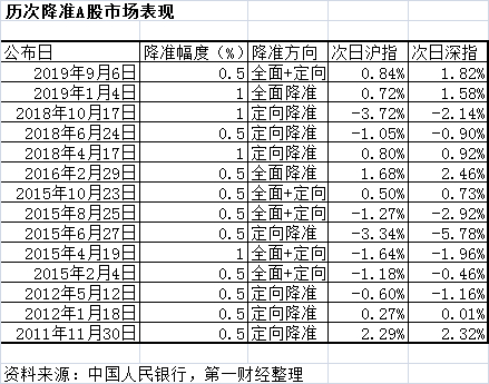 从央行历次降准的结果看,股市表现有涨有跌,并非出现单一的上涨局面。
