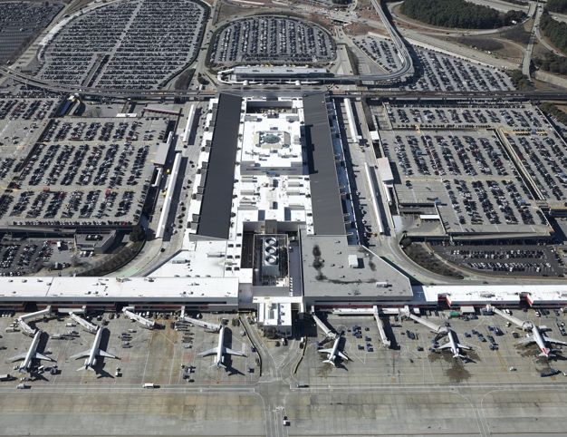 作为美国最主要的航空连接枢纽之一,亚特兰大国际机场拥有7个客运航站楼、数个货运航站楼和1个通航停机坪,有约200个客运机位和5条跑道。