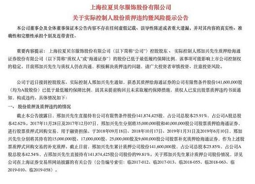 可如今的拉夏贝尔,却是已在退市的边缘徘徊。上市两年多,拉夏贝尔仅在第一年(2017年)盈利4.99亿元。到了第二年(2018年)就业绩“变脸”亏损1.6亿元!这种情况下,如果2019年再度亏损,公司就将面临退市风险。