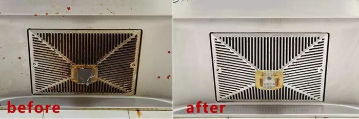 用它喷一下,连已经结块的陈年油垢,都以肉眼可见的速度被化解掉。