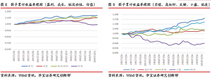 1月推荐成长、估值以及低流动性因子,主要考虑到在经济下行的背景下,成长因子具有明显的逆周期属性,上个月市场涨幅较大,需要警惕估值修复导致的下跌风险,适当关注低估值因子的表现,同时低流动性因子在市场下跌时具有防御属性。