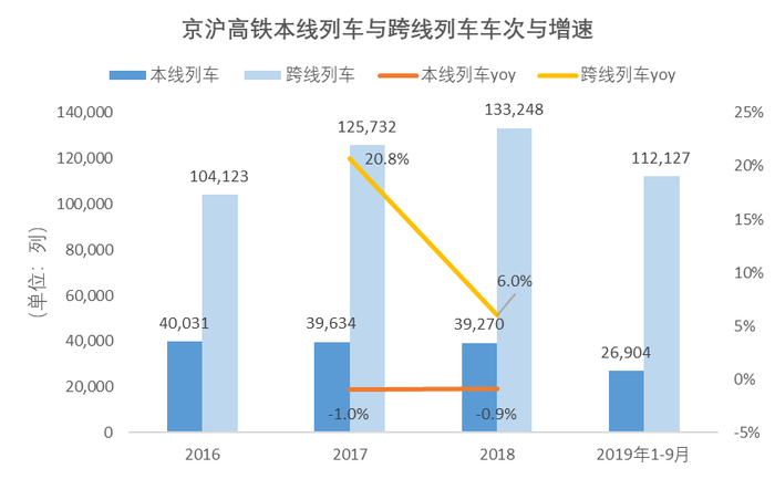 ▼ 京沪高铁列车增速主要来自跨线列车