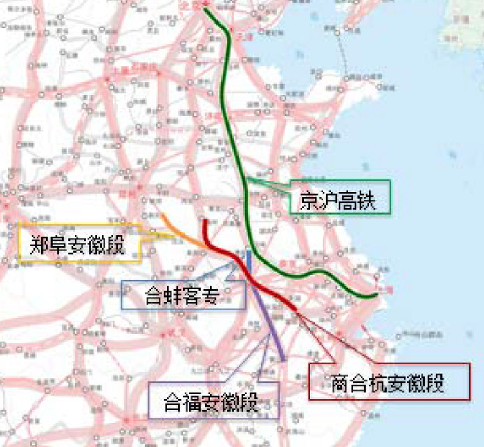 ▼ 京福安徽公司管辖线路与京沪高铁位置示意图