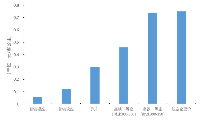 ▼ 中国各交通方式平均客公里票价对比