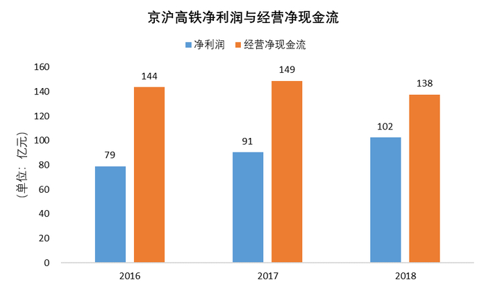 ▼ 京沪高铁经营净现金流大于净利润