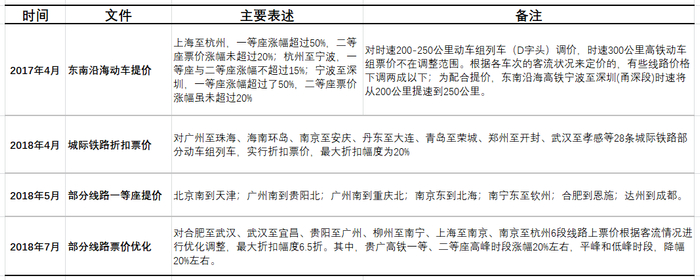 ▼ 高铁动车票价变化案例梳理