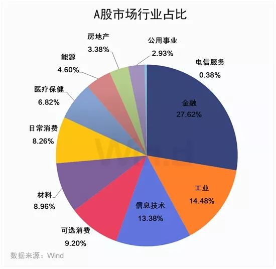 纵观2019年Wind全球一级行业,信息技术行业以44.67%位居首位,而可选消费、工业、电信服务紧随其后,但与第一名有较大差距。与之相对的A股市场,日常消费、信息技术和金融行业指数涨幅居前,2019年度累计涨跌幅分别为64.64%、53.39%和37.70%,而这三个行业在全部A股市场的占比分别是第五名(8.26%)、第三名(13.38%)以及第一名(27.62%)。