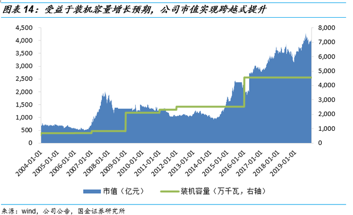 在资产注入、装机容量提升预期下,公司在2006-2007年、2014-2015年实现两次市值的跨越式提升。