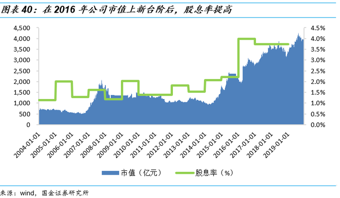 2016年溪向电站注入,公司市值登上新台阶。而公司的高分红特点,则帮助公司市值在新的基础上继续升高。截止2019年底,公司市值相比溪向电站注入后,提升了87%。