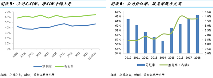 高分红承诺下公司市值再次爬升:在有力的收入保障、有效的成本控制、稳定的经营性现金流三者助力下,公司做出承诺,对2016年至2020年每年度的利润分配按每股不低于0.65元进行现金分红;对2021年至2025年每年度的利润分配按不低于当年实现净利润的70%进行现金分红。2016-2018年公司分红分别为0.725、0.680、0.680元,高出承诺金额。公司高额分红显著高于可比上市公司,股息率也位居可比上市公司前列。
