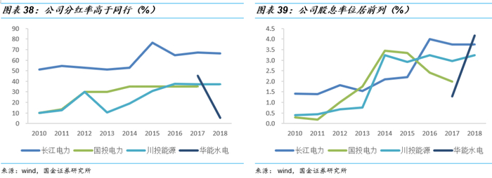 四库联调业绩稳定,具备稳健投资价值:除装机容量的提升外,公司业绩还受长江来水丰枯影响。在2016年溪洛渡、向家坝电站投产后,公司建成梯级四库联调体系,平滑长江来水波动,近年来业绩变化更加平稳。受益与此,公司现金流稳定,同时公司做出高分红承诺,分红率从2014年开始逐年走高,股息率近年来稳定在3.5-4.0%之间,投资回报稳健。