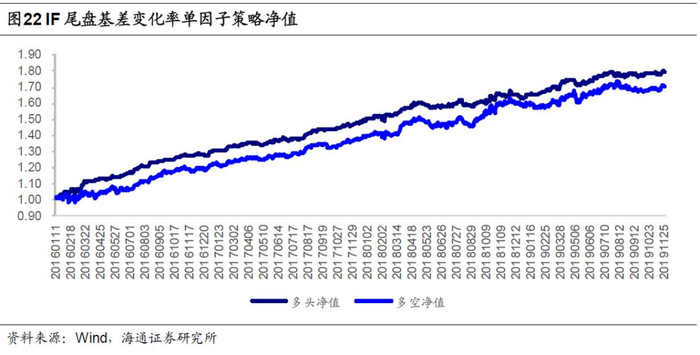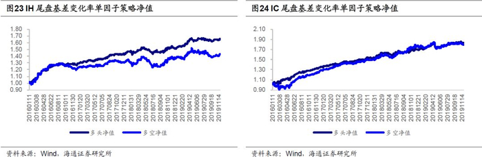 与尾盘涨幅因子逻辑相近,尾盘的基差变化率同样能够反映出投资者对隔夜不确定性的担忧。我们构建多空策略和多头策略如下: