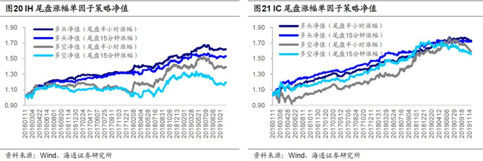 尾盘涨幅反映了投资者对隔夜不确定性的担忧和对次日市场表现的预期。当尾盘下跌时,市场预期隔夜不确定性较高,承担隔夜风险的多头投机者应当获得更高的风险补偿。另一方面,在情绪驱动下,尾盘出现过度反应的可能性较大。因此,我们构建多空策略和多头策略如下: