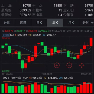 前半周两个交易日,沪指连续上攻最终收于3050.12点,为2019年画上圆满句号。周四沪指跳空高开,全天大涨1.15%,实现2020年开门红;尽管周五微跌,但截至收盘,沪指报3083.79点,全周累计上涨2.62%,周线实现五连阳。