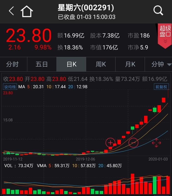 本周部分热门股“高温”不退。星期六在经历周一的小幅下跌后,随后三个交易日再度连续涨停,最近15个交易日收出12个涨停;引力传媒上周(2019年12月23日至2019年12月27日)五个交易日斩获四个涨停板,本周4个交易日再度收获三涨停。
