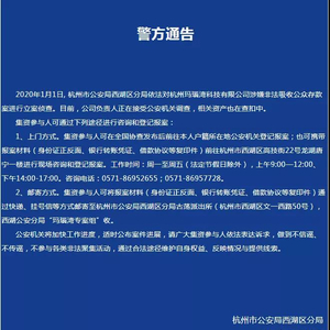 2019年12月29日晚,警方公告称,对杭州信釜资产管理有限公司涉嫌非法吸收公众存款案立案,而公司法人代表钱志龙主动投案。