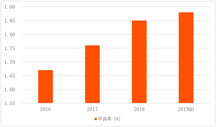 2019年三季度末,华夏银行不良率为1.88%,较年初上升0.03个百分点。整体来看,华夏银行不良率呈现逐年递增趋势,资产状况不断恶化。另外,华夏银行还曾因不良认定遭质疑,在2018年有近141亿元逾期超90天贷款未计入不良贷款,若将该部分计入2018年不良贷款,那么不良率会提升0.87个百分点,至2.72%。