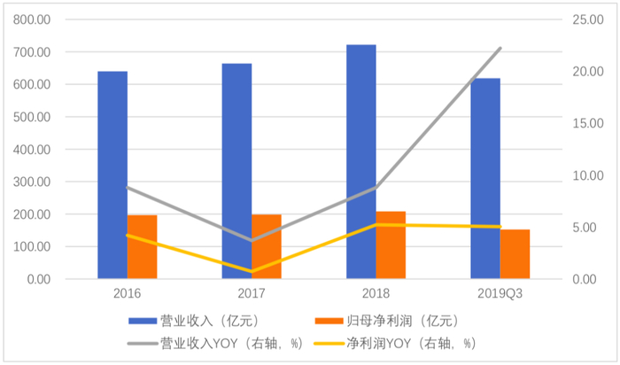 2019年三季度末,华夏银行的营业收入和归母净利润分别为618.79亿元和152.44亿元,两者分别同比上升22.23%和5.04%。