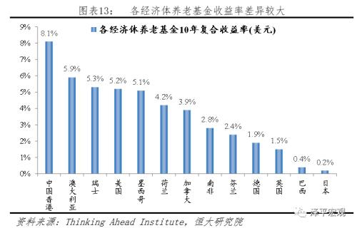 四是提高养老保险基金的投资收益,发挥长期稳定资金对资本市场的作用。据全国社会保障基金理事会发布的年度报告,2018年基本养老保险基金投资收益率为2.56%,低于2017年的5.23%和2016年的3.03%,收益率偏低与市场波动相关性高,但在资产配置和平滑收益方面,我国养老基金管理仍处于起步阶段。TAI发布的全球养老保险基金研究报告显示,2007-2017年各经济体养老保险基金资产复合增长率差异较大,中国香港(8.1%)表现最佳,英国(1.5%)、巴西(0.4%)和日本(0.2%)收益较低,因此与国际相比,中国(内地)处于中等偏低水平,可参考中国香港养老保险基金资产配置经验,优化投资策略,稳定积累长期资金储备。