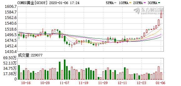 2020年对于黄金来说,注定是不平凡的一年,短短几个交易日,现货黄金已经上涨近4%。随着地缘摩擦加剧,今日黄金现货一度突破1579.72美元,刷新近7年新高。有分析认为,金价甚至有望升破1920 美元左右的2011年历史高位。