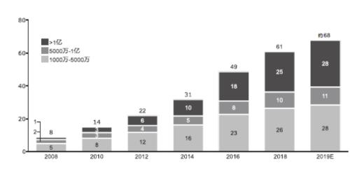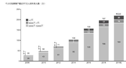 图1 2008-2019年中国高净值人群的规模及构成