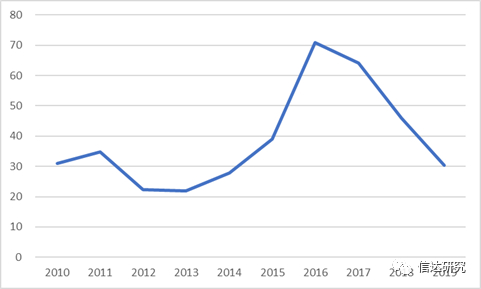 图4:2010-2019年小市值组上限市值(单位:亿元)