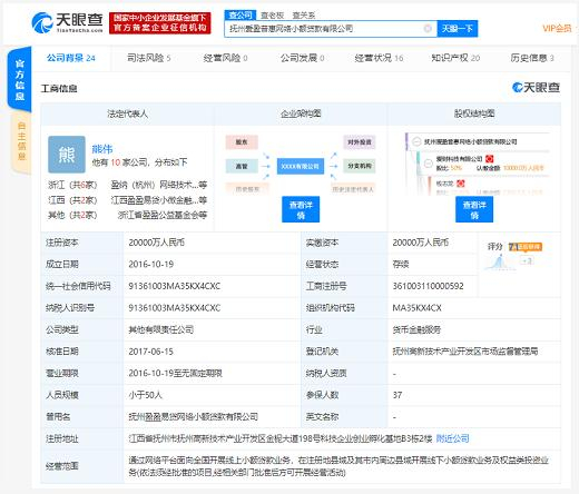 抚州爱盈普惠网络小额贷款有限公司成立于2016年10月,注册资本2亿人民币,法定代表人为盈纳集团创始人熊伟,公司经营范围为通过网络平台面向全国开展线上小额贷款业务,在注册地县域及其市内周边县域开展线下小额贷款业务及权益类投资业务。