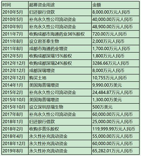 2019年8月,海普瑞发公告称:为满足公司日常生产经营的资金需求,提高超募资金使用效率,实现公司和股东利益最大化,公司拟将剩余超募资金65,282.01万元及相应利息收入永久性补充流动资金。至此,所有IPO募集资金已经全部用完。