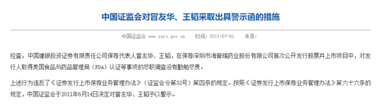 随着“国内唯一FDA认证”受到多方质疑,其两位保荐人也因对海普瑞取得美国食品与药品管理局(FDA)认证等事项的调查没有勤勉尽责,被证监会予以警示,随后离开中投证券。