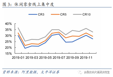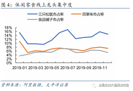 12月前三市占率27.34%,同比提升2.71pct,其中三只松鼠市占率14.61%,同比提升1.67pct,百草味7.47%,同比提升0.85pct,良品铺子5.27%,同比提升0.19pct。