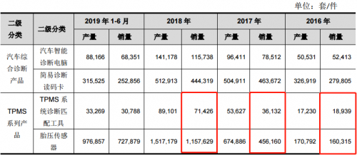 基于此,2016-2018年,公司TPMS系统诊断匹配工具和胎压传感器销量猛增,分别由1.89万套、16.03万件增至7.14万套、115.76万件。